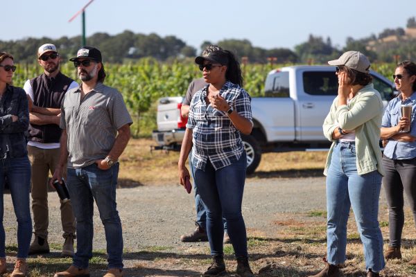 Attendees joined Tod Mostero, Director of Viticulture & Winemaking at Dominus Estate, as he works with Josh Widaman, Estate Winemaker, and Gustavo Aviña, Viticulture Director, of Pine Ridge Vineyards to begin the process of transitioning a now fallow vineyard to dry farming. Dry farming doesn’t mean you just turn off the water – it requires careful forethought before planting a vineyard, and strategic management once planted. To pique your interest here is a feature that shares more about dry farming at Dominus.