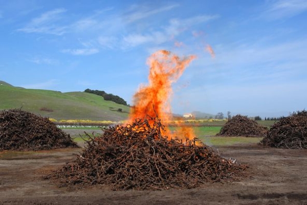 Open burning of spent vines and other wood waste creates black carbon, a powerful greenhouse gas, and generates community pushback. Napa Green has developed resources to implement conservation burning, and formed relationships with contractors available to provide flame-cap kilns and air curtain burners (competitive in price with chipping). These alternatives dramatically reduce smoke and emissions, can generate biochar, and reduce soil damage from burns. Pursue burn methods that burn faster, make neighbors and the Air District happy, and in the end, generate a product that you can use with compost to increase nutrient & water retention and plant availability.